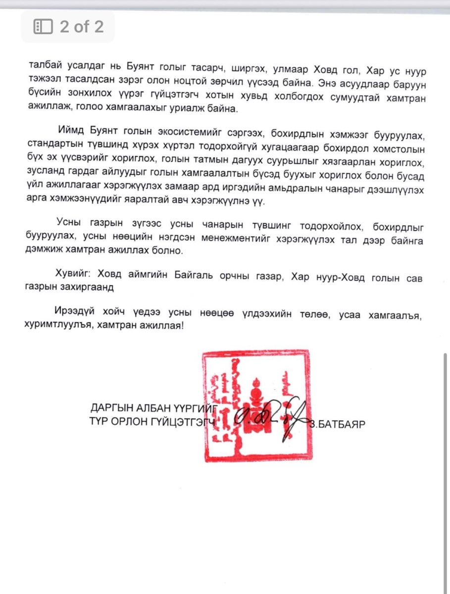 Иймд иргэдийн эрүүл мэндийг хамгаалах, Буянт голын экосистемийг сэргээх, бохирдлын хэмжээг бууруулах, стандартын түвшинд хүрэх хүртэл холбогдох арга хэмжээг авах зөвлөмжийг хүргүүлжээ.
