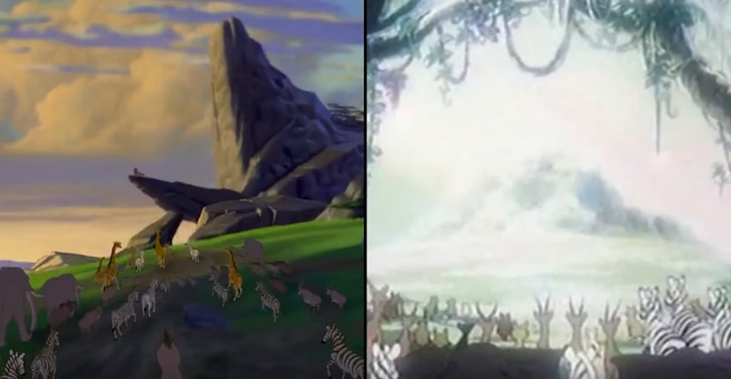 “Араатны хаан арслан” нээлтээ хийх үед маш олон дүр зураглал, үйл явц нь Кимбагийн түүхтэй адилхан байжээ.