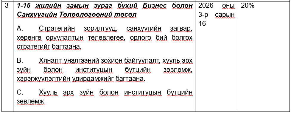 - Богино, дунд болон урт хугацааны (1-15 жил) хүрээг хамаарна.