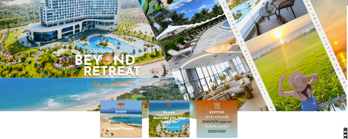 2026 оны нэгдүгээр сарын 4-11-ны хооронд Вьетнамын На транг арал дээр зохион байгуулагдах "BEYOND RETREAT"-д хөнгөлөлттэй үнээр бүртгүүлэх хугацаа дуусахад 2 хоног үлдлээ