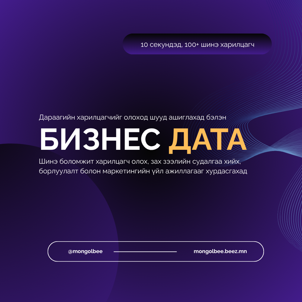 Өмнө нь бизнесүүд шинэ харилцагч хайхдаа олон цаг зарцуулж, гараар мэдээлэл цуглуулах шаардлагатай байсан бол Mongolbee-ийн шинэ шийдэл нь энэхүү процессыг хэдхэн секундэд автоматжуулж, маркетинг, борлуулалтын үйл ажиллагааг илүү хурдан эхлүүлэх боломжийг бүрдүүлж байна.