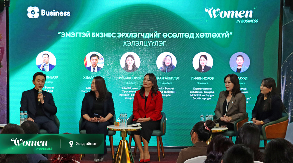 “Women in business” арга хэмжээнд ХААН Банкны Гүйцэтгэх захирал Р.Мөнхтуяа тэргүүтэй банкны төлөөллөөс гадна, Ховд аймгийн Засаг даргын тамгын газар, Эмэгтэй бизнес эрхлэгчдийг дэмжигч холбоод болон бусад мэргэжлийн байгууллагын төлөөллүүд оролцлоо. Энэ үеэр ХААН Банкнаас бизнесийн өсөлтийг дэмжих банкны онцлох бүтээгдэхүүн үйлчилгээг ХААН Банкны Стратеги хариуцсан дэд захирал Ю.Төрмөнх танилцуулснаас гадна Жижиг дунд бизнесийн академийн менежер Э.Түвшинбаяр “Цахим шийдэл- ирээдүйд суралцах хэв маяг” сургалт зөвлөгөөг өгч, бизнесээ хэрхэн өсгөх боломжуудын тухай ярилцан, хэлэлцүүлэг өрнүүллээ. Ингээд “Эмэгтэй бизнес эрхлэгчдийг өсөлтөд хөтлөхүй” хэлэлцүүлгийн үеэр дурьдагдсан онцлох санаануудыг тоймлон хүргэе.