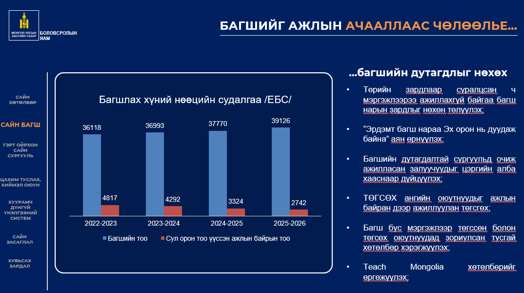 Хөдөө, алслагдсан бүс нутгийн сургуулиудад багшийн дутагдал олон жил үргэлжилж, зарим хичээл огт ордоггүй, эсвэл мэргэжлийн бус багшаар заалгах нөхцөл үүсээд байна.