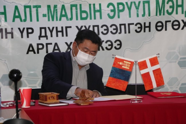 Үндсэн илтгэгч нарыг мэдээлэл өгсний дараа Ногоон алт, малын эрүүл мэнд төслийн хүрээнд бий болгосон үр дүнг хүлээлгэн өгөх, гэрээнд гарын үсэг зурах ёслол боллоо. Гэрээг Аймгийн ЗД-ын орлогч бөгөөд аймгийн БМАХ-ийн ахлагч В.Мөнхбат, Архангай аймгийн Бэлчээр ашиглагчдын нэгдсэн холбооны Гүйцэтгэх захирал Т.Батдорж нар үзэглэв.