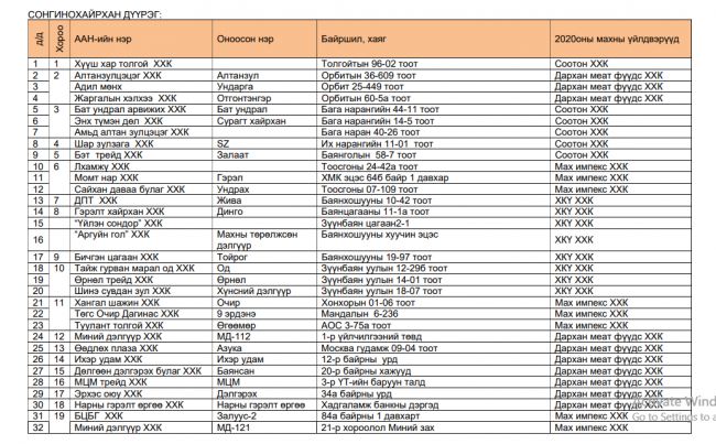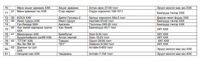 Нөөцийн мах худалдаалж газруудын хаяг байршил.
