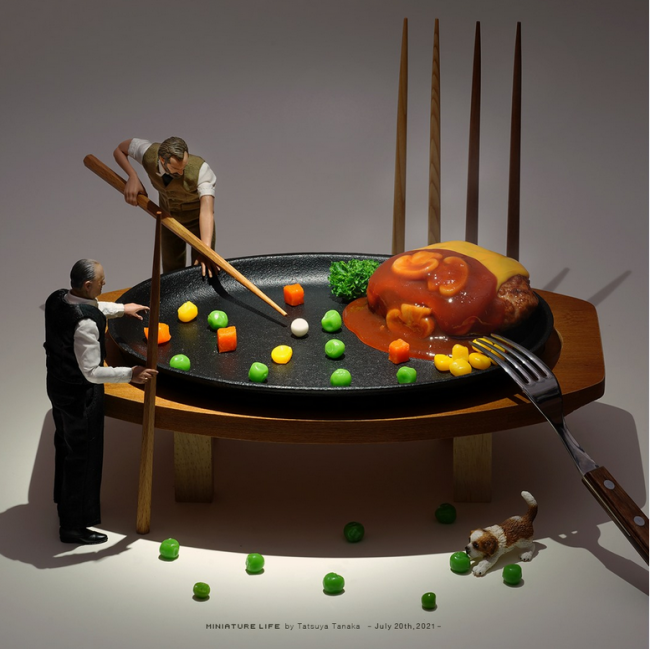Японы уран бүтээлч Тацуяа Танака хоол хүнс, хувцас, үзэг харандаа, цахилгаан хэрэгсэл, амны хаалт зэргийг ашиглан жижиг диорама бүтээдгээрээ алдартай нэгэн билээ. 2011 оноос хойш эхлэн өдөр тутмын амьдралыг хөгжилтэй, өвөрмөц хэлбэрээр харуулж эхэлжээ. Түүний үзэсгэлэнг Япон болон бусад оронд нийт 1.5 сая хүмүүс үзэж сонирхжээ. Түүний зарим бүтээлүүдээс дор сонирхуулъя.